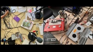 Le petit bois des larmes est un dispositif scénique spécifiquement conçu comme une forêt, constitué de tissus teints en motifs shibori*, autour duquel le public se place. En son cœur, l’artiste musicienne et chanteuse propose un moment contemplatif et sensible évoquant la fluidité des larmes et le mystère de cette eau qui nous compose presque entièrement. Rivières, lacs, pluie, veinules, trous d’eau, les éléments liquides permettent une exploration poétique des émotions qui submergent parfois les tout-petits, avec les premières joies ou les premières tristesses !